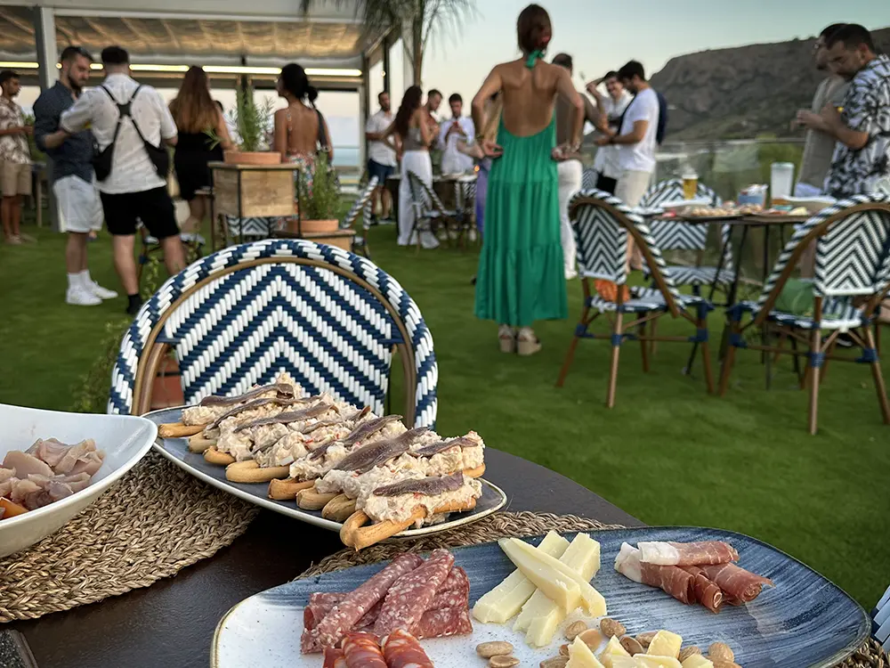 Descubre el lugar perfecto para tus mejores momentos, nuestra exclusiva terraza con vistas al Mediterráneo se convierte en el telón de fondo ideal para cualquier evento. Desde puestas de sol vibrantes hasta noches estrelladas bañadas por la brisa marina, este espacio ha sido diseñado para ofrecer una experiencia sensorial única que combina elegancia, confort y naturaleza.